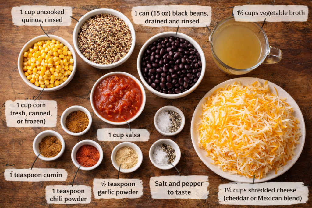 Cover tightly with foil and bake at 375°F for 35–40 minutes. You’ll know it’s ready when the quinoa looks fluffy and the liquid is absorbed. - Add cheese